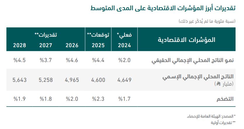 وأشارت إلى أنه من المقدر أن يؤدي الأداء الإيجابي للأنشطة غير النفطية والاستمرار في تطبيق المبادرات الداعمة إلى تطورات إيجابية في الإيرادات على المدى المتوسط؛ إذ يُتوقع أن يصل إجمالي الإيرادات إلى 1.294 تريليون ريال في العام 2028م، وإجمالي النفقات إلى 1.419 تريليون ريال في العام 2028م.