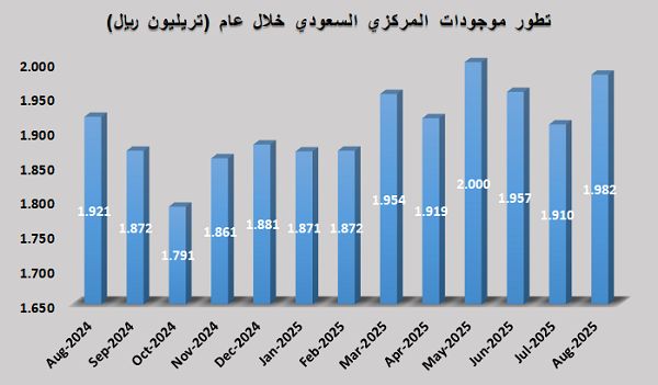 وارتفعت موجودات البنك المركزي، إلى 1.982 تريليون ريال (528.57 مليارات دولار) بالشهر الماضي، مقابل 1.921 تريليون ريال (512.26 مليارات دولار) خلال شهر أغسطس من العام الماضي.