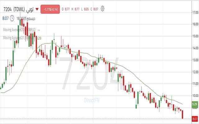 مباشر للأبحاث: يواصل سهم شركة العرض المتقن للخدمات التجارية "توبي" تحركاته داخل اتجاه هابط رئيسي ممتد منذ شهر مارس الماضي، حيث يتداول السعر ضمن قناة سعرية هابطة تعكس سيطرة واضحة للقوى البيعية على المدى المتوسط.
