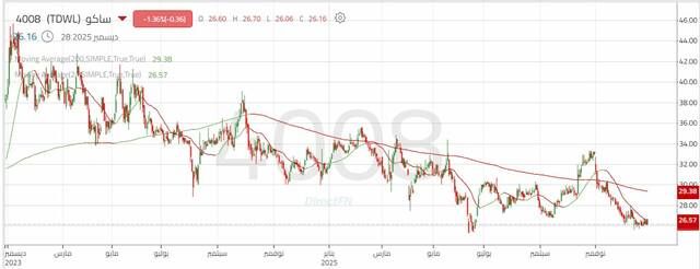 سهم "ساكو" يحاول الخروج من النطاق العرضي, اليوم الأحد 28 ديسمبر 2025 01:29 مساءً