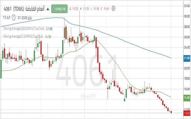 سهم "أنعام القابضة" ضمن اتجاه هابط يعكس سيطرة القوة البيعية, اليوم الاثنين 29 ديسمبر 2025 02:25 مساءً