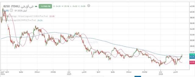 وبدأ السهم مع مطلع عام 2026 الارتداد من مستوى دعم قوي عند 20.85 ريال، وذلك بعد موجة هبوط حادة خلال الربع الأخير من 2025.