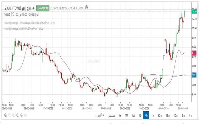سهم "بترو رابغ" يواصل الزخم الصاعد, اليوم الخميس 2 أبريل 2026 11:22 صباحاً