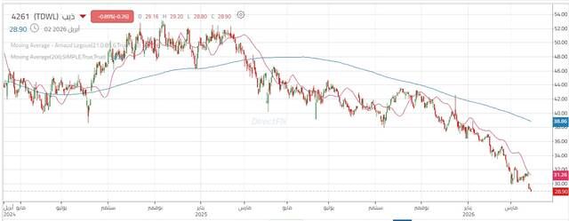 سهم "ذيب" يكسر قاعه التاريخي ويواصل النزيف, اليوم الخميس 2 أبريل 2026 12:34 مساءً