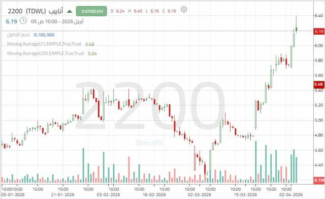 سهم "أنابيب" يختبر مستوى نفسياً هاماً مدعوماً بإشارات فنية إيجابية, اليوم الأحد 5 أبريل 2026 11:13 صباحاً