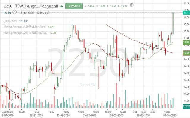 سهم "المجموعة السعودية" يختبر مستويات مقاومة محورية, اليوم الأحد 12 أبريل 2026 11:13 صباحاً