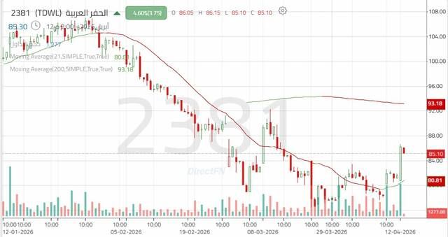 سهم "الحفر العربية" يستعيد الزخم الصاعد مع اختراق مستويات محورية, اليوم الأحد 12 أبريل 2026 03:21 مساءً