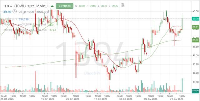 تحركات عرضية لسهم اليمامة للحديد وترقب لاختراقات فنية, اليوم الخميس 23 أبريل 2026 12:33 مساءً