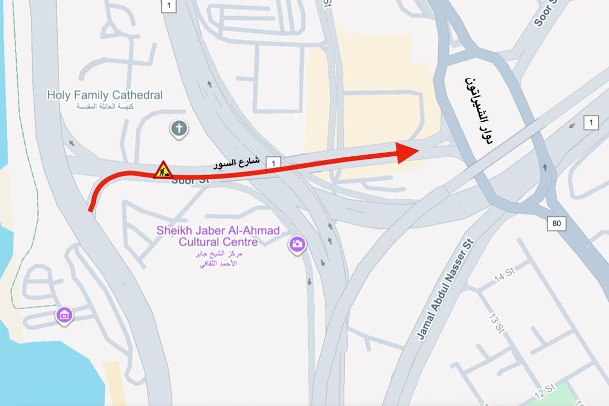 أعلنت الإدارة العامة للمرور إغلاق كلي لشارع السور بدايةً من تقاطع مركز الشيخ جابر الثقافي مع شارع الخليج العربي باتجاه دوار الشيراتون، وذلك اعتباراً من اليوم الجمعة حتى بعد غد الأحد وذلك لإجراء الصيانة اللازمة للطريق. وفق ما نشرته الإدارة عبر حسابها على منصة «إكس».