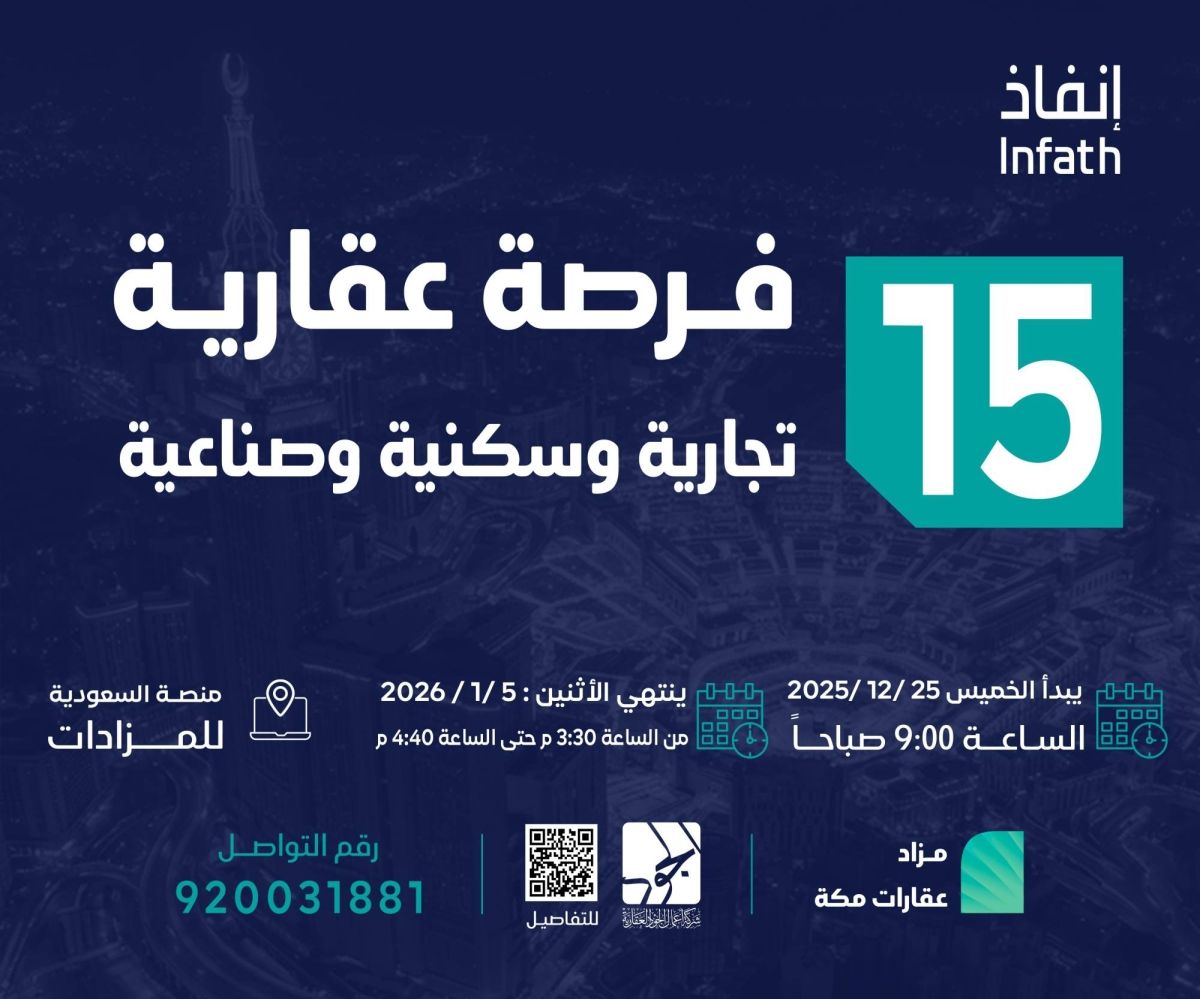 أرض خام وعقارات استثمارية وتجارية وسكنية وصناعية في مكة المكرمة, اليوم الثلاثاء 23 ديسمبر 2025 10:53 صباحاً