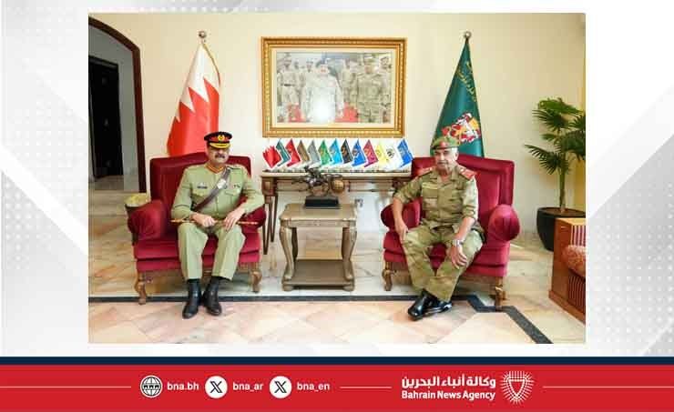 المنامة في 25 ديسمبر/ بنا / استقبل الفريق أول ركن سمو الشيخ محمد بن عيسى آل خليفة رئيس الحرس الوطني، سعادة العميد محمد إدريس نواز نائب قائد الكلية العسكرية الباكستانية في كاكول، وذلك بمناسبة زيارته للمملكة وحصول فريق جمهورية باكستان الإسلامية الشقيقة على المركز الأول في مسابقة عصا قياس الخطوات العسكرية الأولى، التي عقدت في معسكر رئاسة الحرس الوطني بمشاركة فرق من دول مجلس التعاون التعاون الخليجي وجمهورية باكستان الإسلامية الشقيقة وقوة دفاع البحرين والحرس الوطني، اليوم الخميس، في مكتب سموه بمعسكر الصخير.