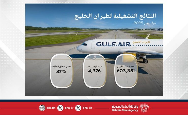 المنامة في 31 ديسمبر/ بنا / سجّلت شركة طيران الخليج، الناقلة الوطنية لمملكة البحرين، أداءً تشغيليًا قويًا خلال شهر نوفمبر 2025، مدعومًا بالإقبال الكبير على السفر عبر شبكة وجهاتها المتنامية.