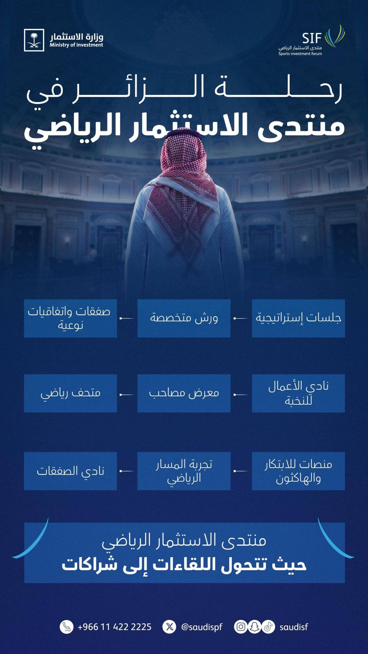 ويتضمن برنامج المنتدى مسارات متعددة تشمل جلسات استراتيجية، وورش عمل، ومعرضا استثماريا، ومنصة للاتفاقيات، إلى جانب نادي الأعمال المخصص لكبار المستثمرين لبناء الشراكات، كما يشهد تنظيم «الهاكثون الرياضي» لدعم الابتكار واستقطاب الحلول التقنية في القطاع.