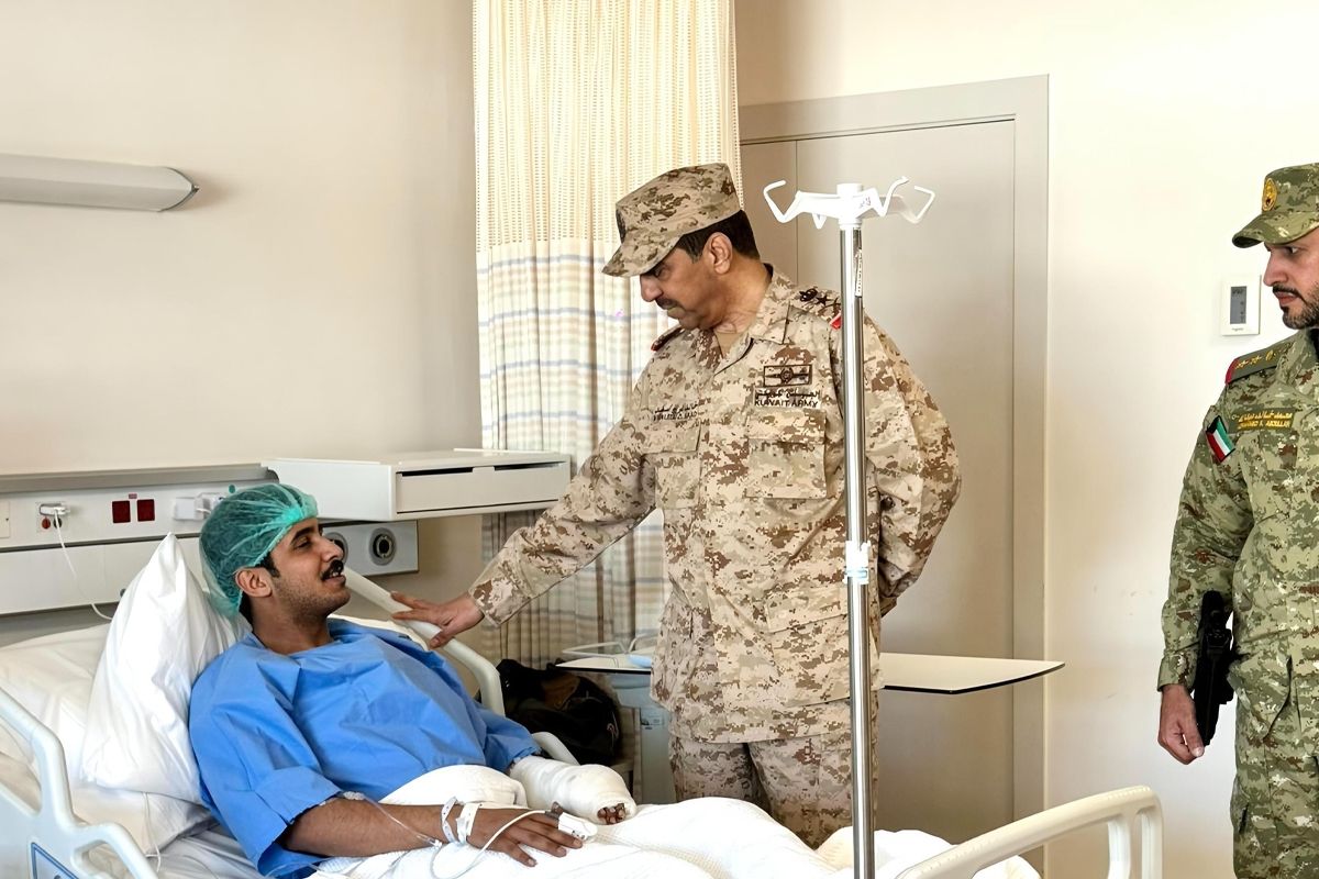 قام رئيس الأركان العامة للجيش الكويتي الفريق الركن خالد الشريعان اليوم الجمعة بزيارة إلى عدد من مصابي الحرس الوطني للاطمئنان على حالتهم الصحية بعد إصابتهم أثناء أداء واجبهم في أحد مواقع المسؤولية من جراء استهدافه بطائرات مسيرة معادية.